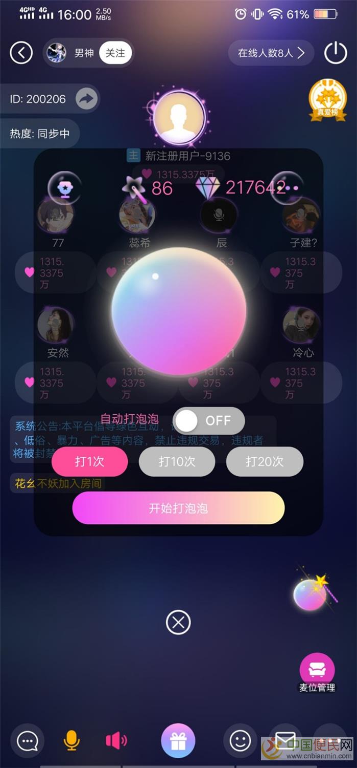4.语音直播系统(语音聊天室功能,多人连麦、打泡泡游戏、语音交友)