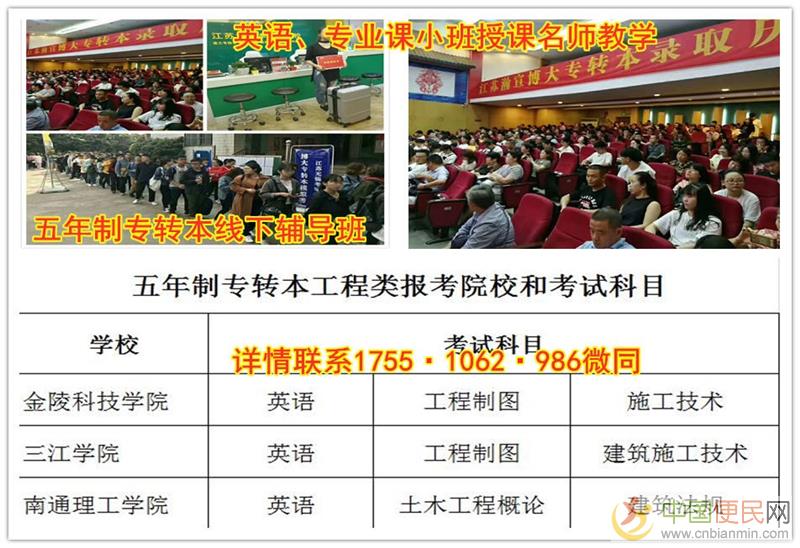 江苏瀚宣博大专转本学校专业从事五年制专转本辅导14年,辅导英语和所有主考院校专业课,为学员提供五年制专转本专业咨询、详细院校介绍、各个模块英语辅导、专业课教学、统一报名、集体送考、志愿填报等一系列流程化服务,每月都有月考周考,一方面也可以了解自己的大致排名,为填报志愿作参考,一方面进行针对性的辅导和查漏补缺,发挥优势,弥补短板,让考生对五年制专转本的了解更加深入,备考更轻松,更有方向性,全年滚动开班,随到随学,一次报名,循环上课直至考试,包含书本教材、英语试卷集、习题册,专业课真.题卷模.拟卷,中间不收取任何费用,南京、无锡、苏州、南通、徐州等各大城市高职生联系瀚宣博大宋老师 1755(微)1062(信)986了解详情,联系老师预约转本试听课来源www.cnbianmin.com。